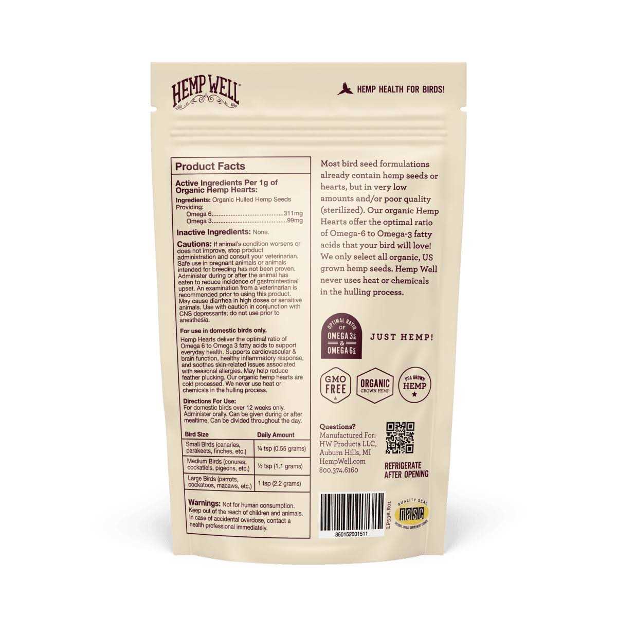 Hemp Well Bird Hemp Hearts Bird Supplement