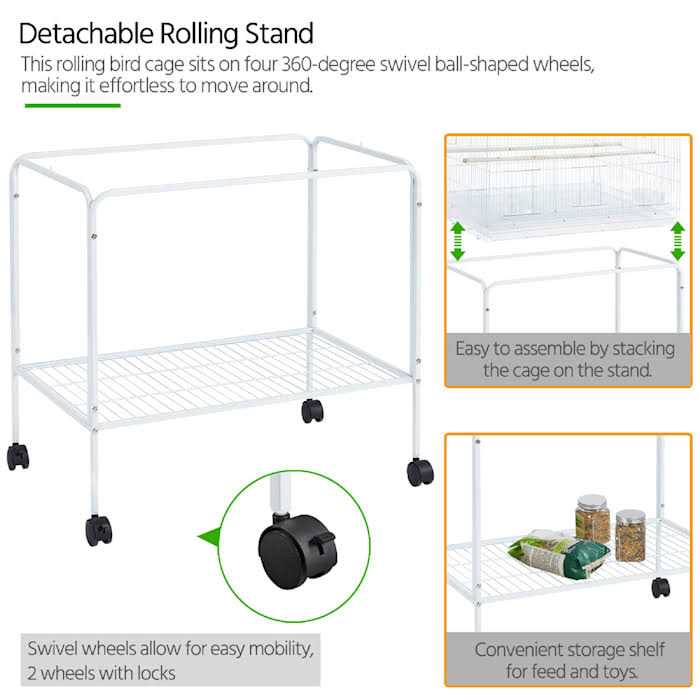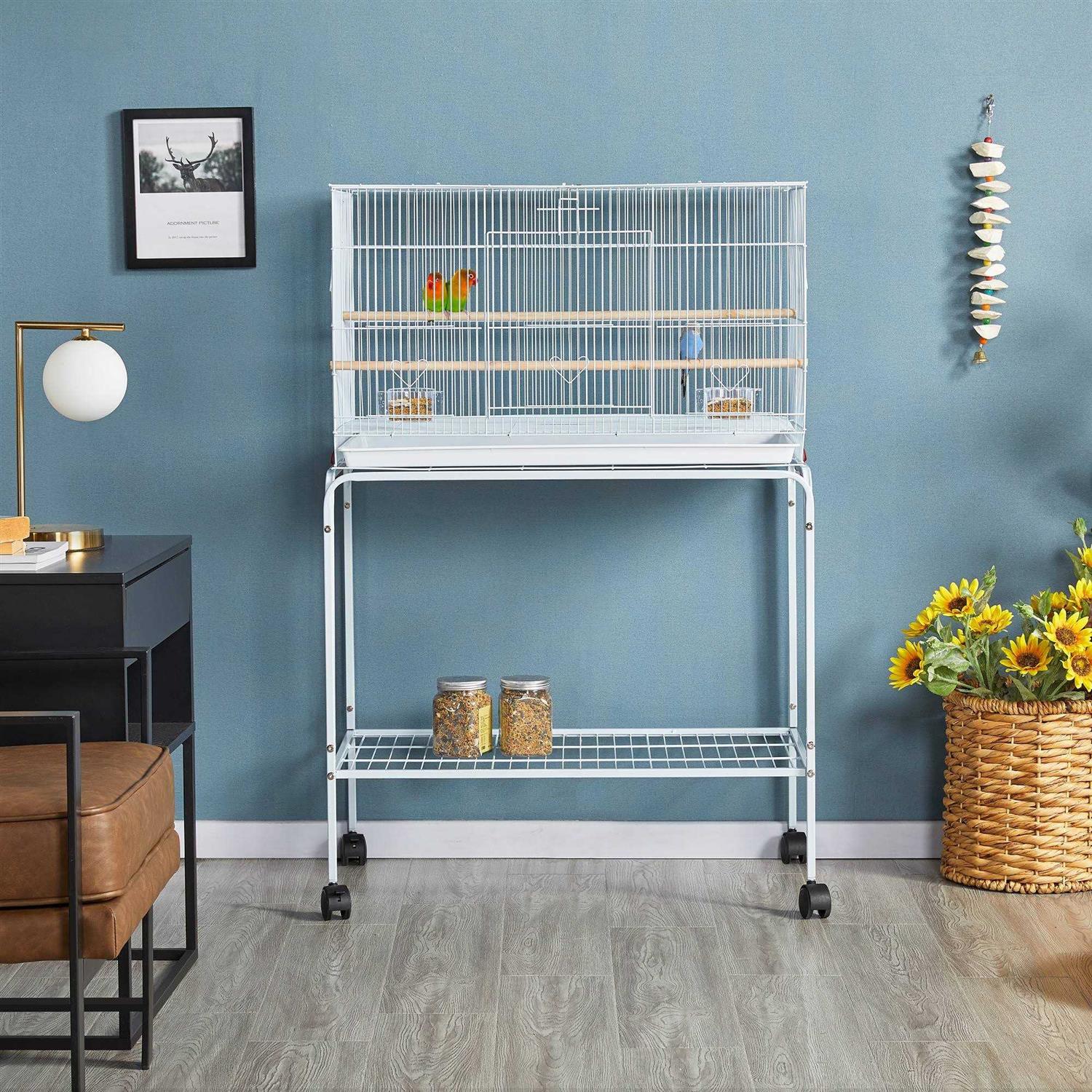 Topeakmart 47 Flight Cage with Slide-Out Tray and Rolling Detachable Stand for Birds