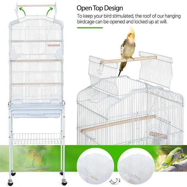 Yaheetech Open Top Metal Bird Cage Large Rolling Parrot Cage with Stand