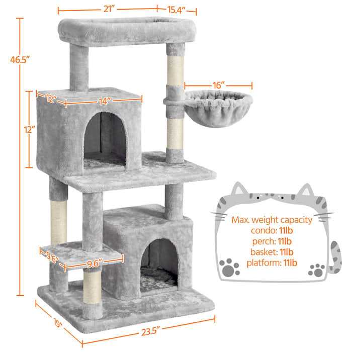 Topeakmart Gray Cat Tree with Two Condos