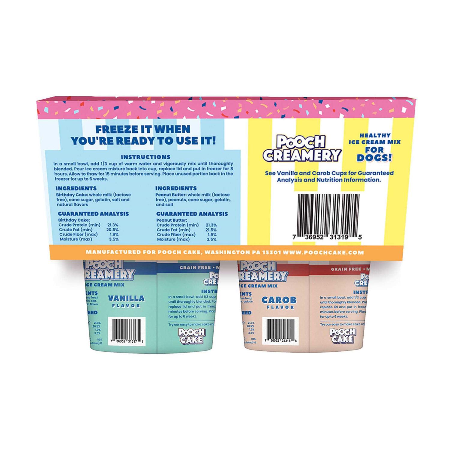 Pooch Creamery Peanut Butter Birthday Cake vanilla carob flavor Ice Cream Mix Dog Treats