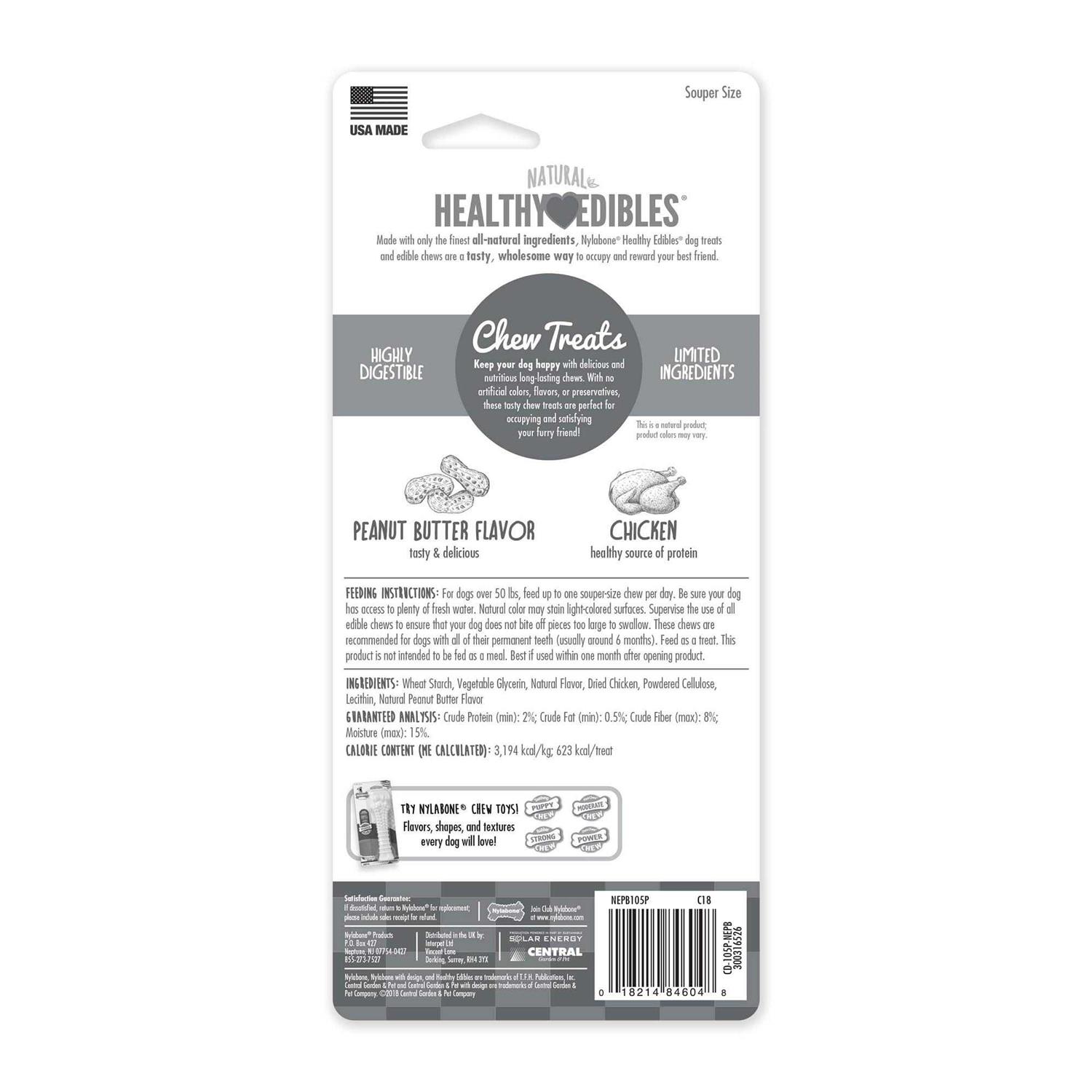 Nylabone Natural Healthy Edibles Peanut Butter Flavor Chew Treats