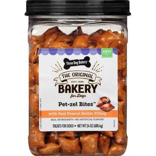 Three Dog Bakery Pet-zel Bites with Real Peanut Butter Filling Dog Treats