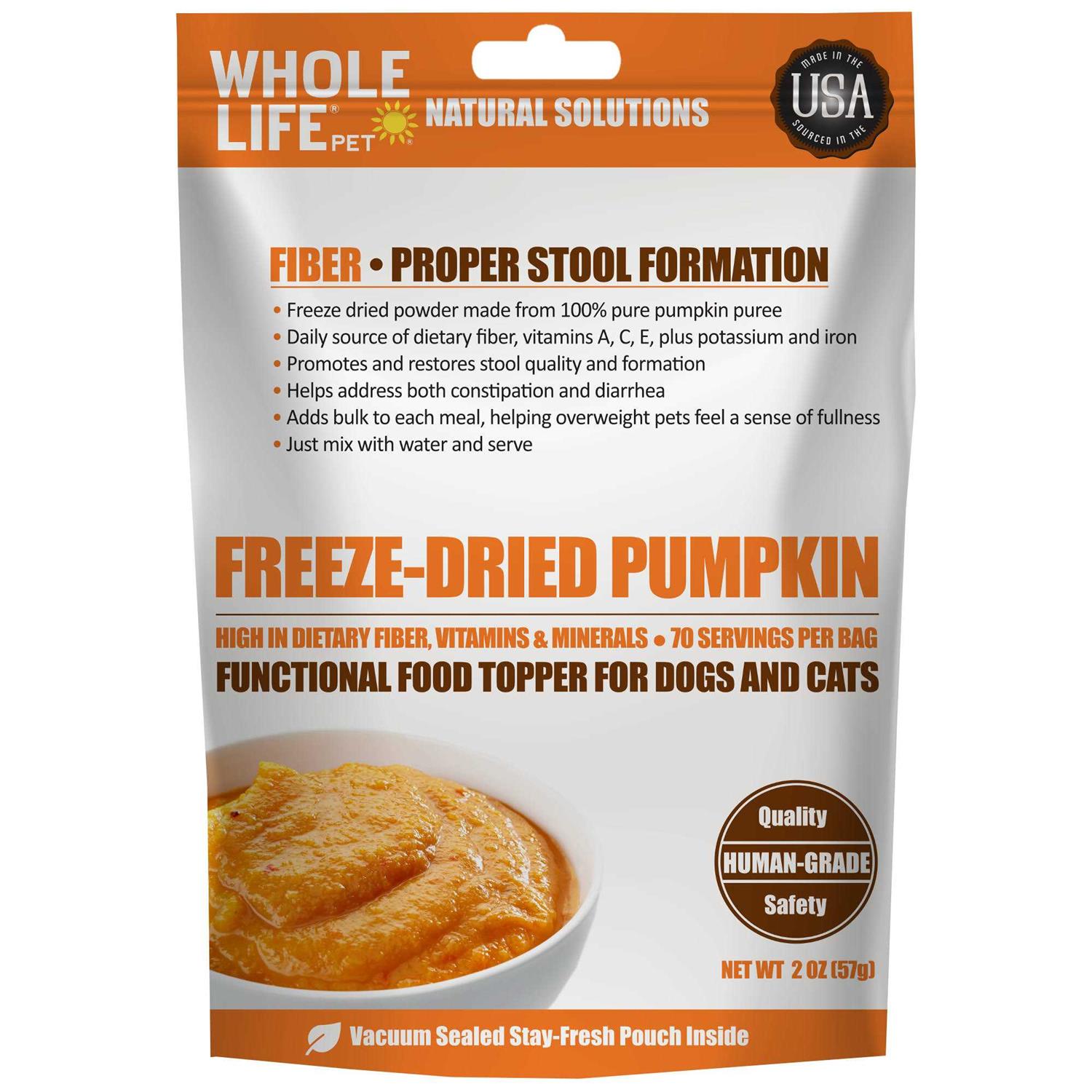 Whole Life Pet Human Grade Freeze Dried Instant Pumpkin Powder for Dogs & Cats