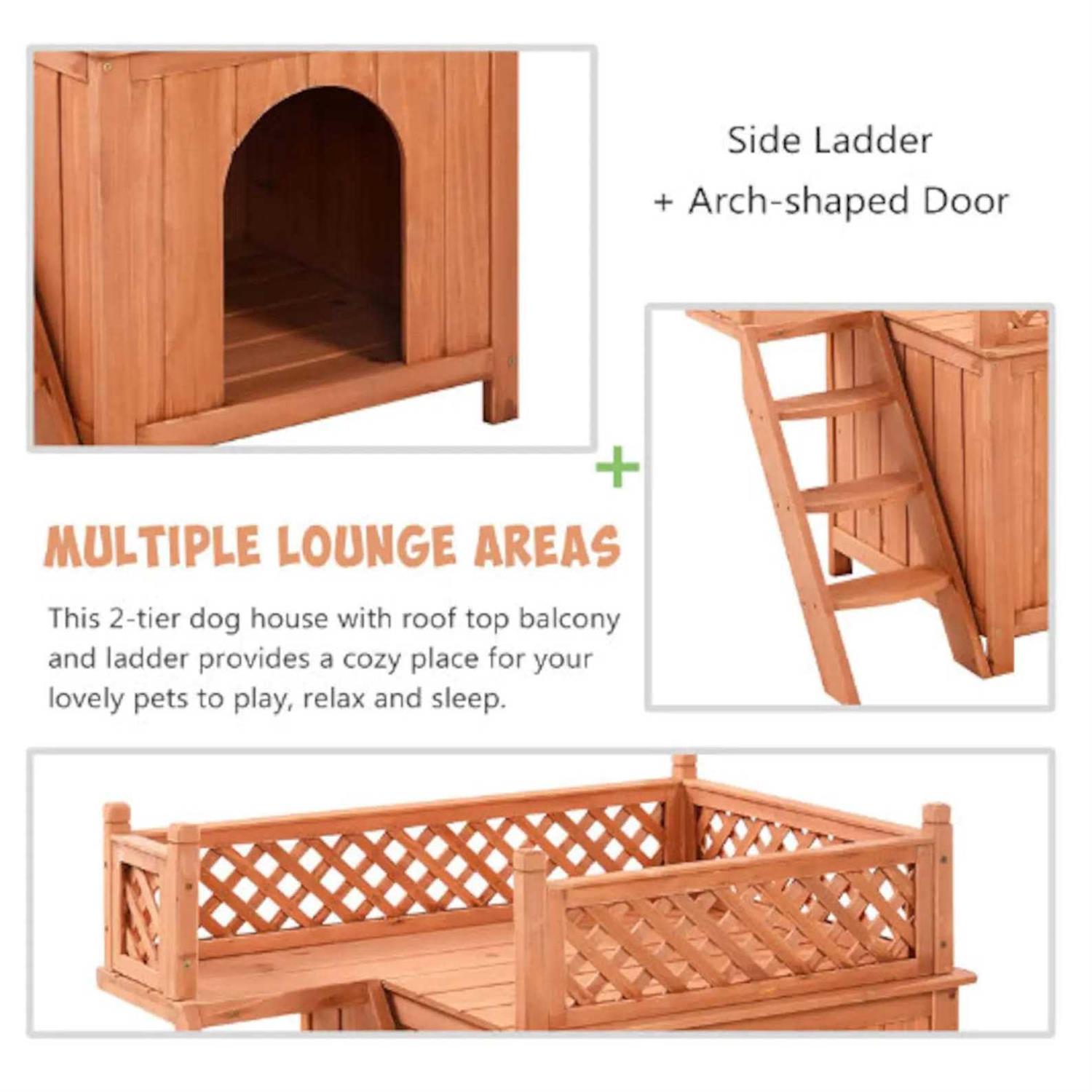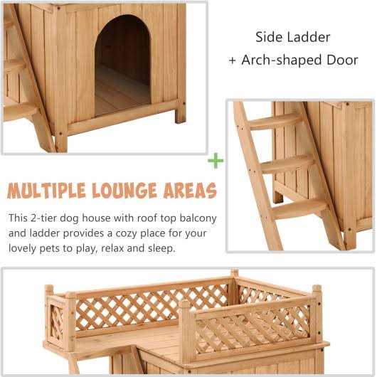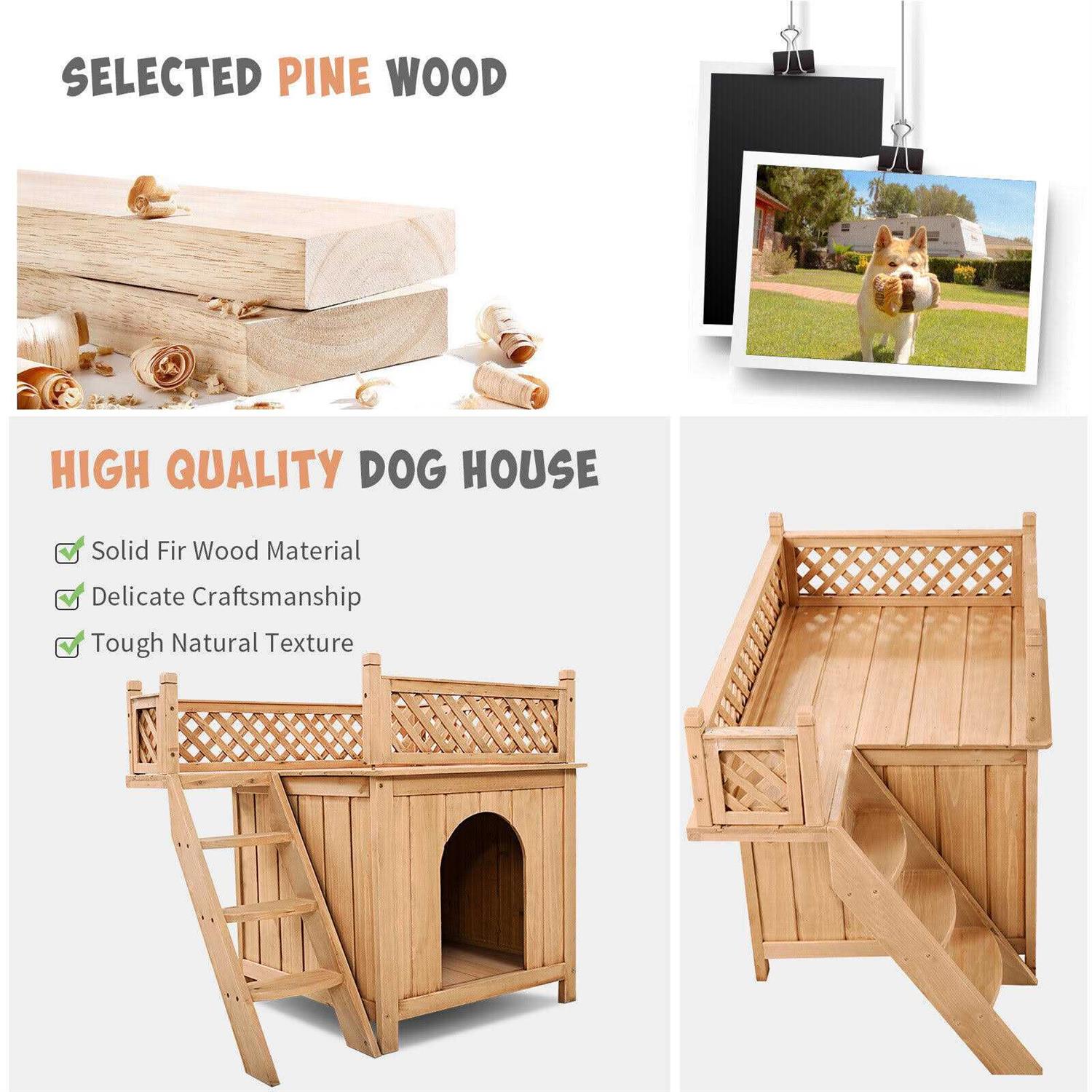 Giantex Pet Dog House, Wooden Dog Room Shelter with Stairs, Raised Roof and Balcony Bed for Indoor and Outdoor Use