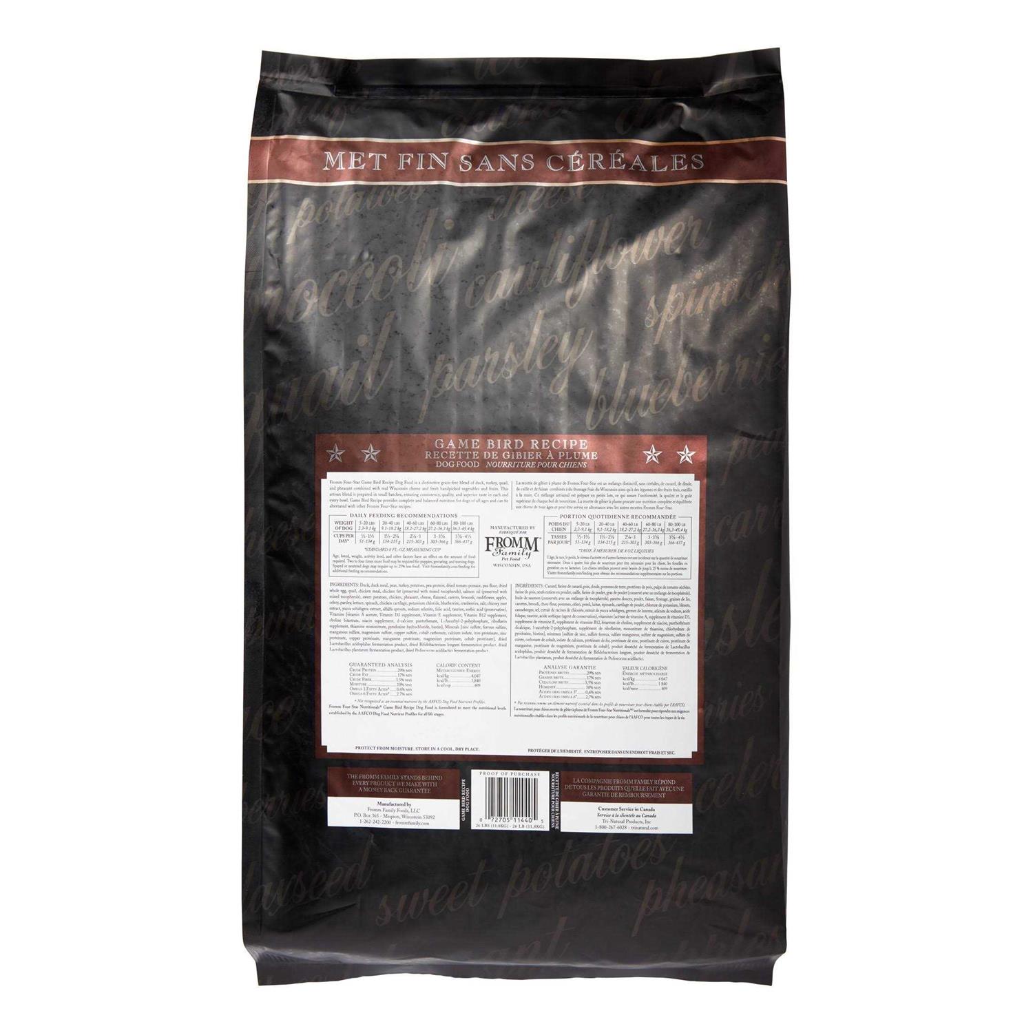 Fromm Four Star Dry Dog Food Game Bird Recipe
