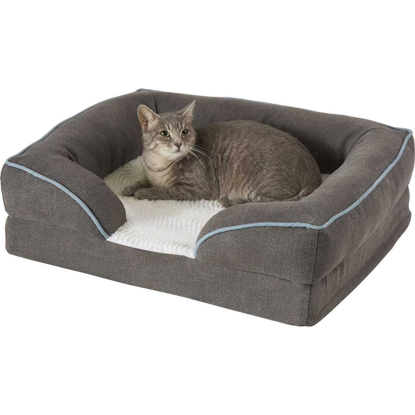 Frisco Plush Orthopedic Front Bolster Cat Dog Bed w/Removable COVER