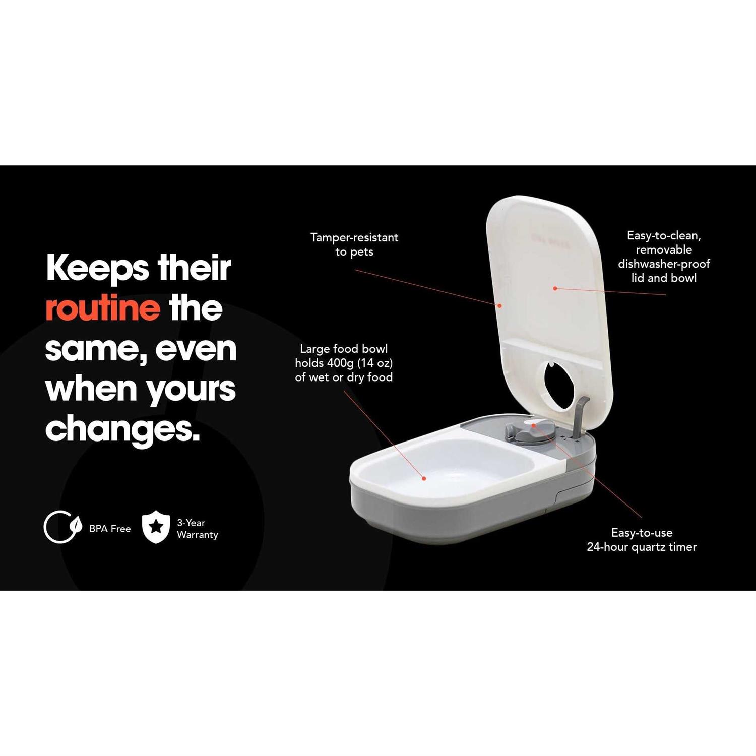 Closer Pets One-Meal Automatic Timed Dog & Cat Feeder with Stainless Steel Bowl Insert