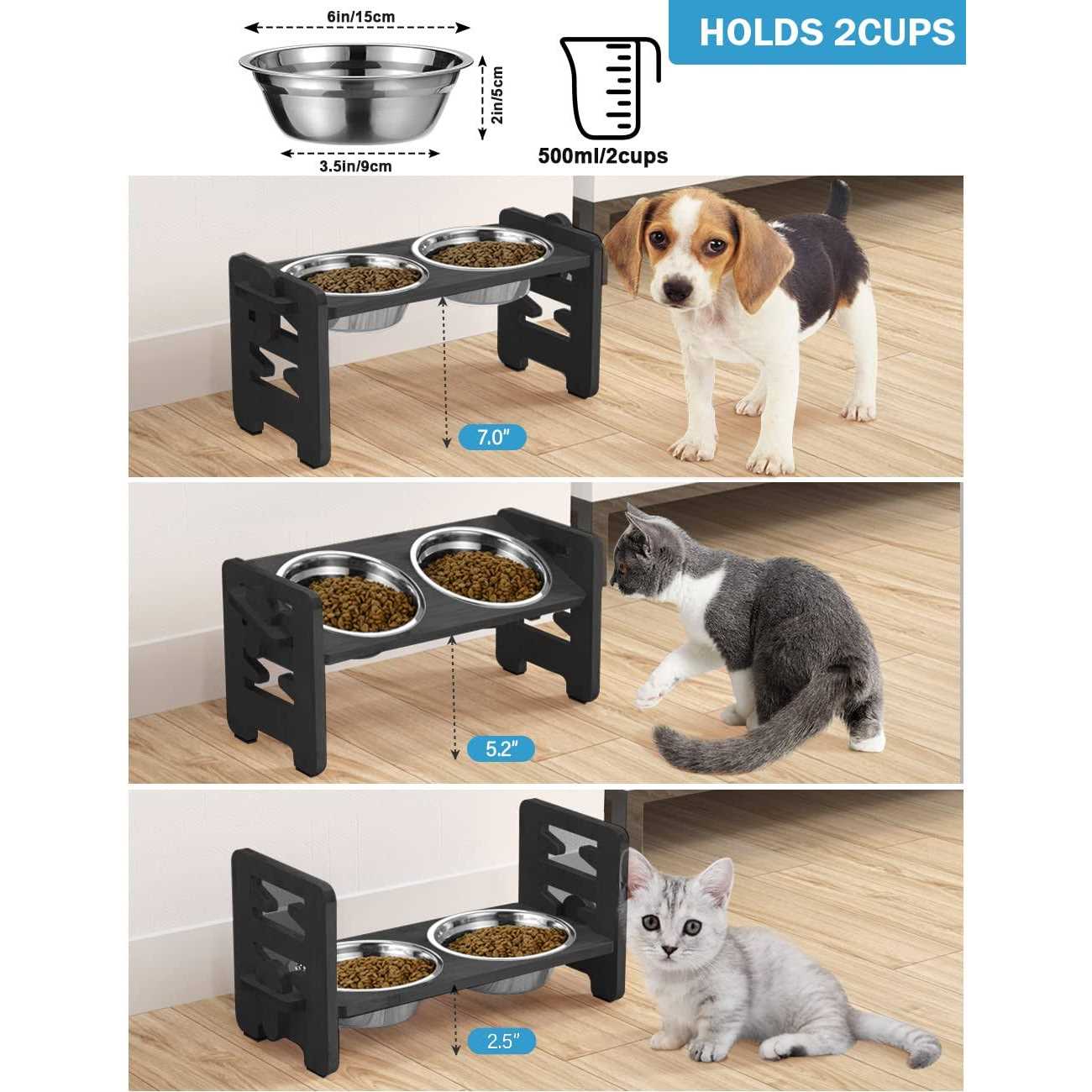 Vantic Elevated Dog Bowls-Adjustable Raised Dog Bowls with Stand for Small Size Dogs and Cats,Durable
