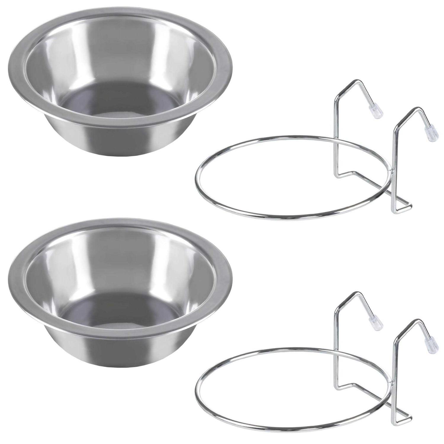 PETMAKER Set of 2 Stainless-Steel Dog Bowls Cage, Kennel, and Crate Hanging Pet Bowls for Food and Water