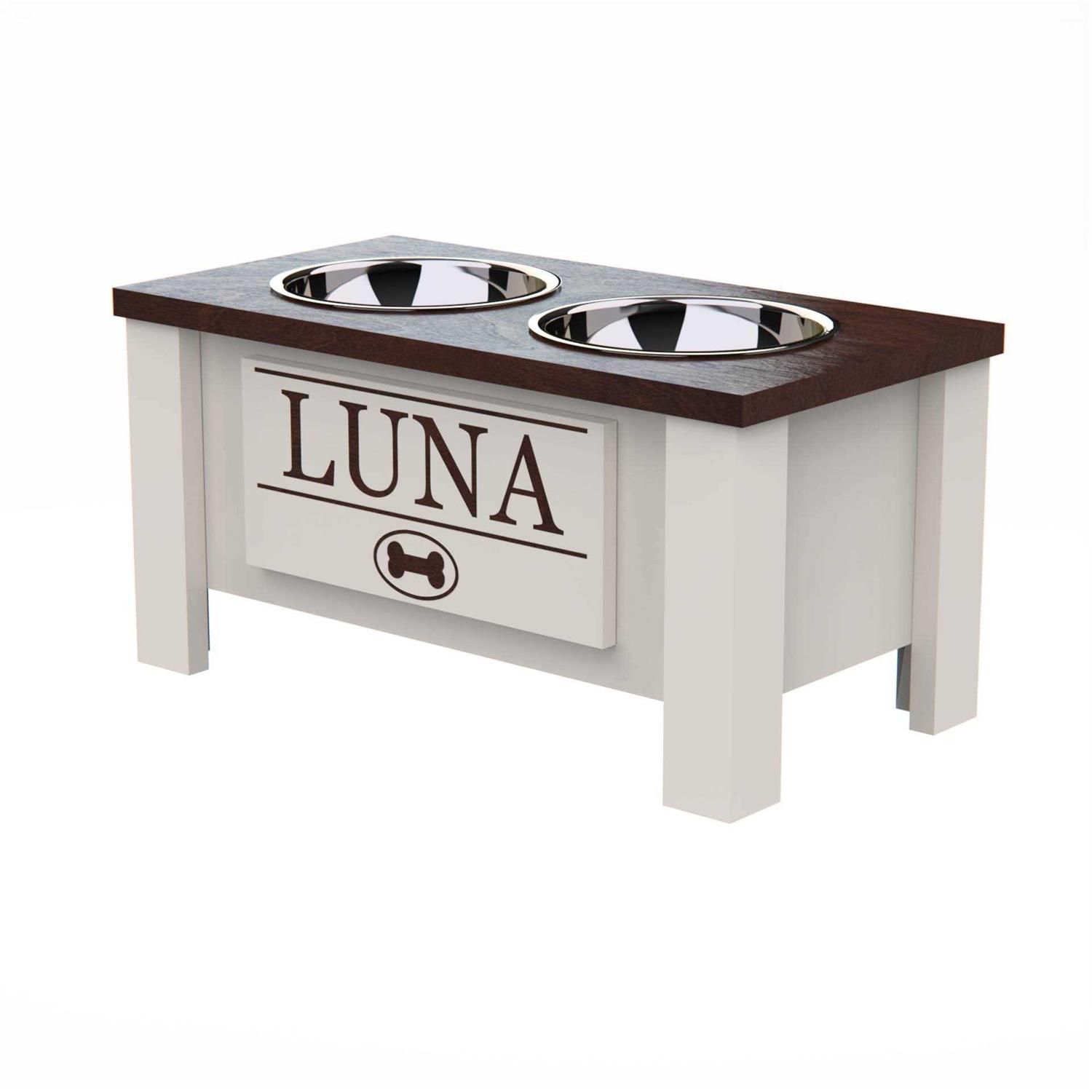 Groovethiswoodshop Personalized Elevated Dog Bowl Stand with Internal Storage