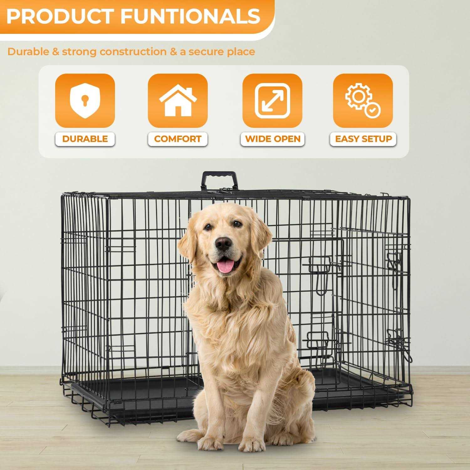 bestpet 24,30,36,42,48 Inch Dog Crates for Large Dogs Folding Mental Wire Crates Dog Kennels Outdoor and Indoor Pet Dog Cage Crate with Double-Door