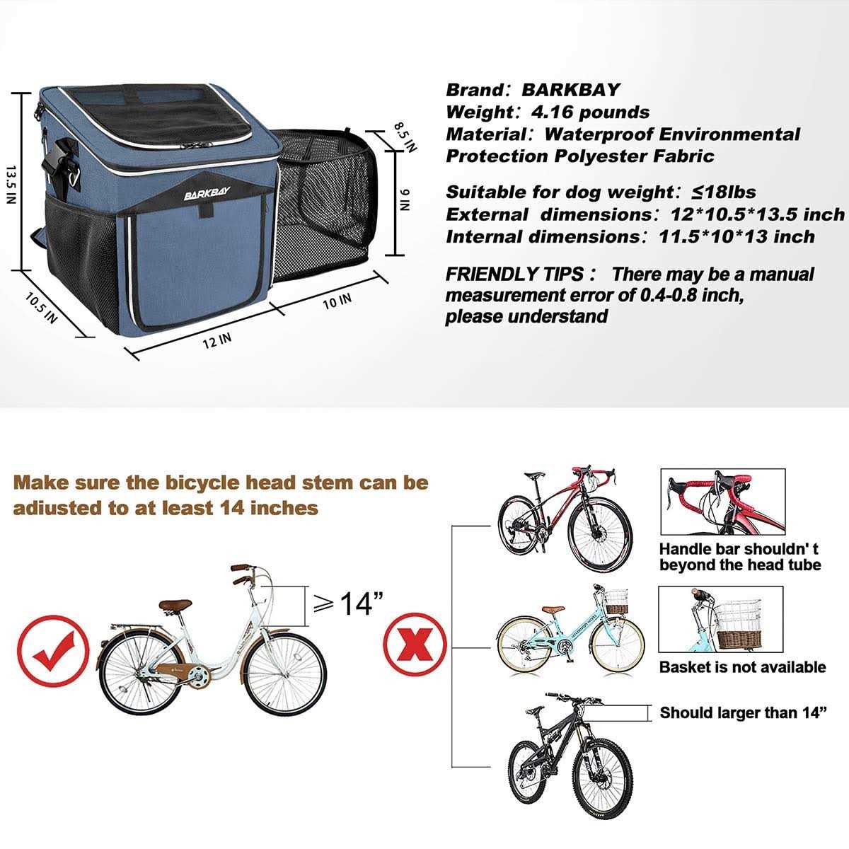 BARKBAY Dog Bike Basket Carrier Expandable Foldable Soft-Sided Dog Carrier