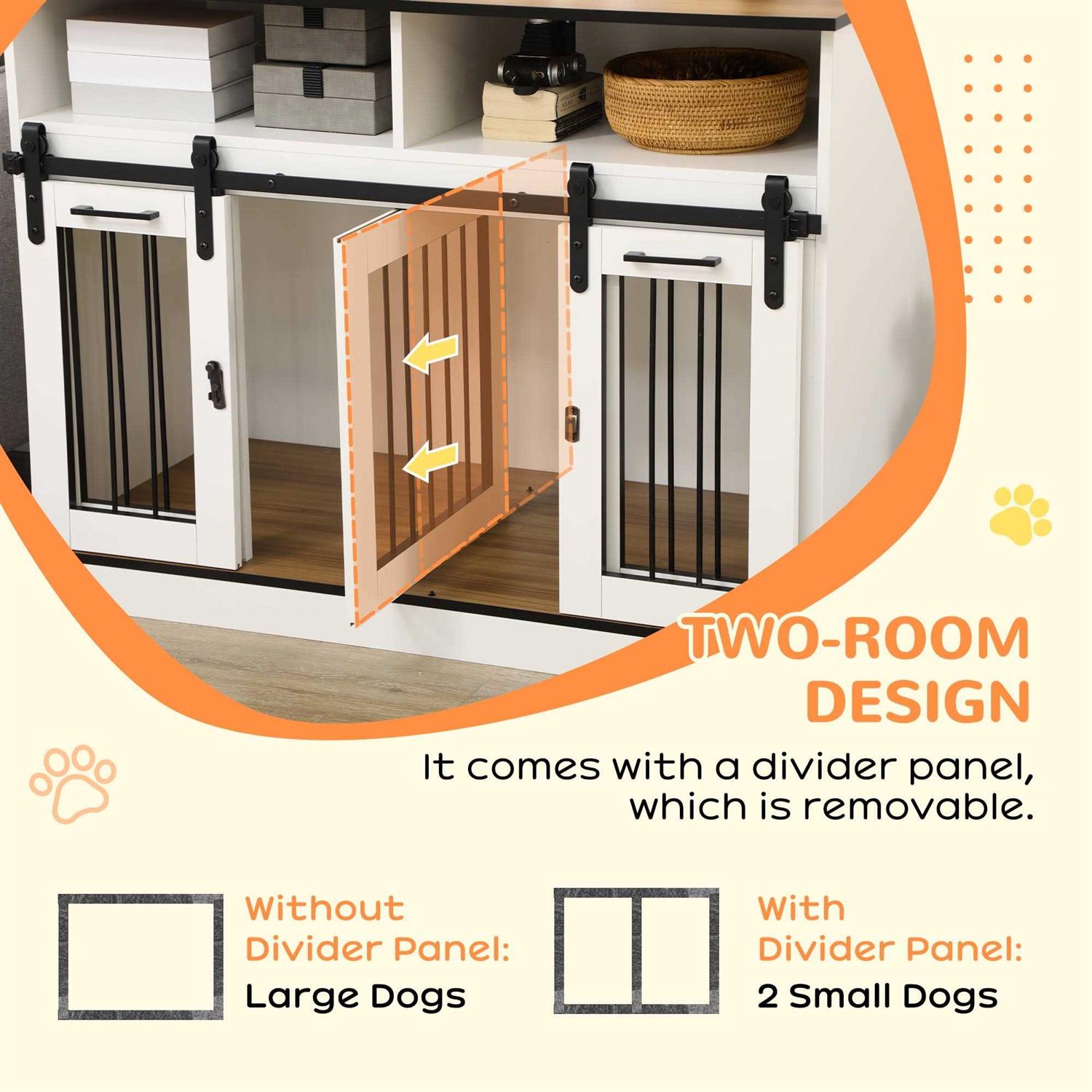 PawHut Dog Crate Furniture for Large Dogs Double Dog Kennel for Small Dogs with Shelves