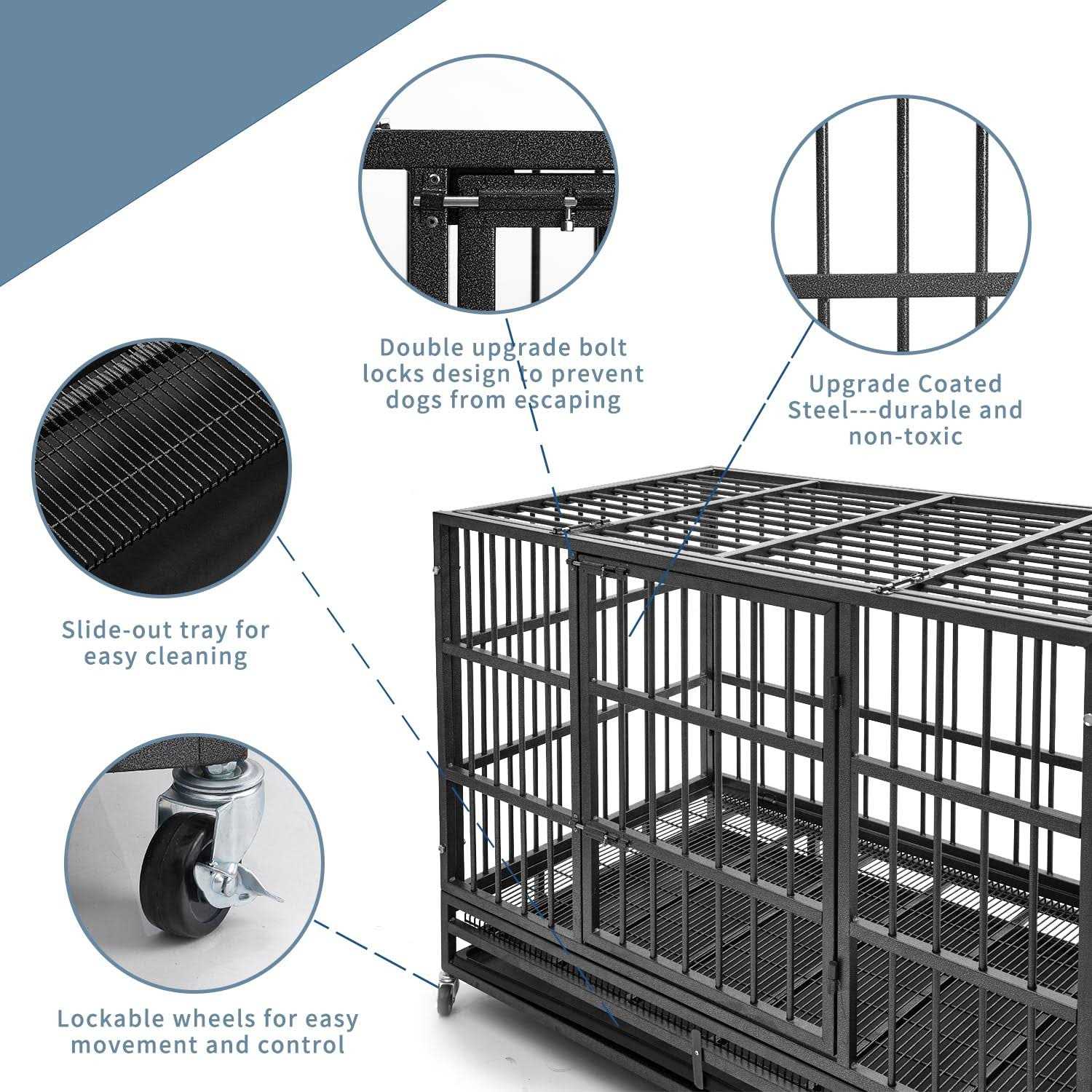 HIWOKK 48 inch Heavy Duty Indestructible Dog Crate Steel Escape Proof