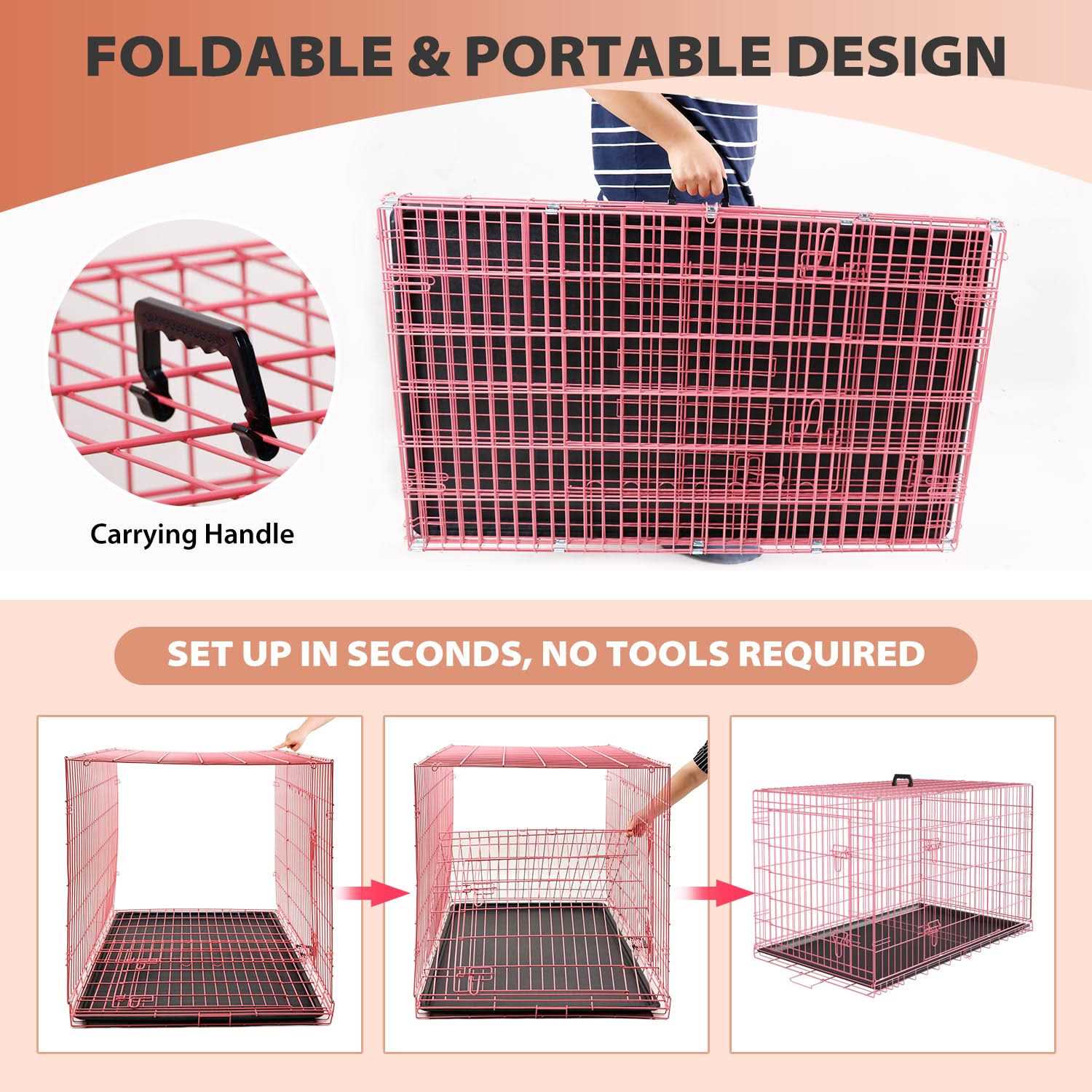 PayLessHere Large Dog Crate Kennel for Medium Large Dogs Metal Dog Cage Double-Door Folding Travel Indoor Outdoor Puppy Playpen with Divider and