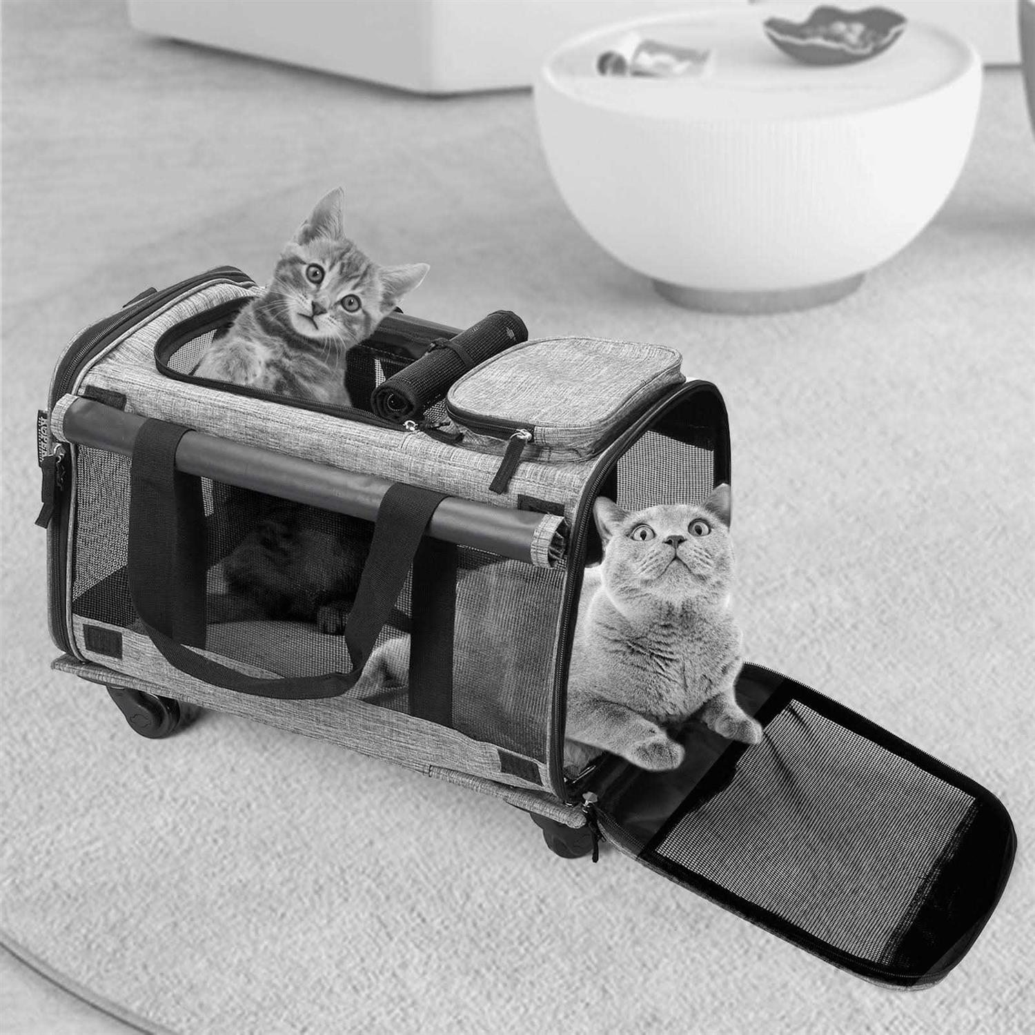 Mexmiody Pet Carrier with Wheels Airline Approved Dog Cat Carrier for Medium Small Dogs
