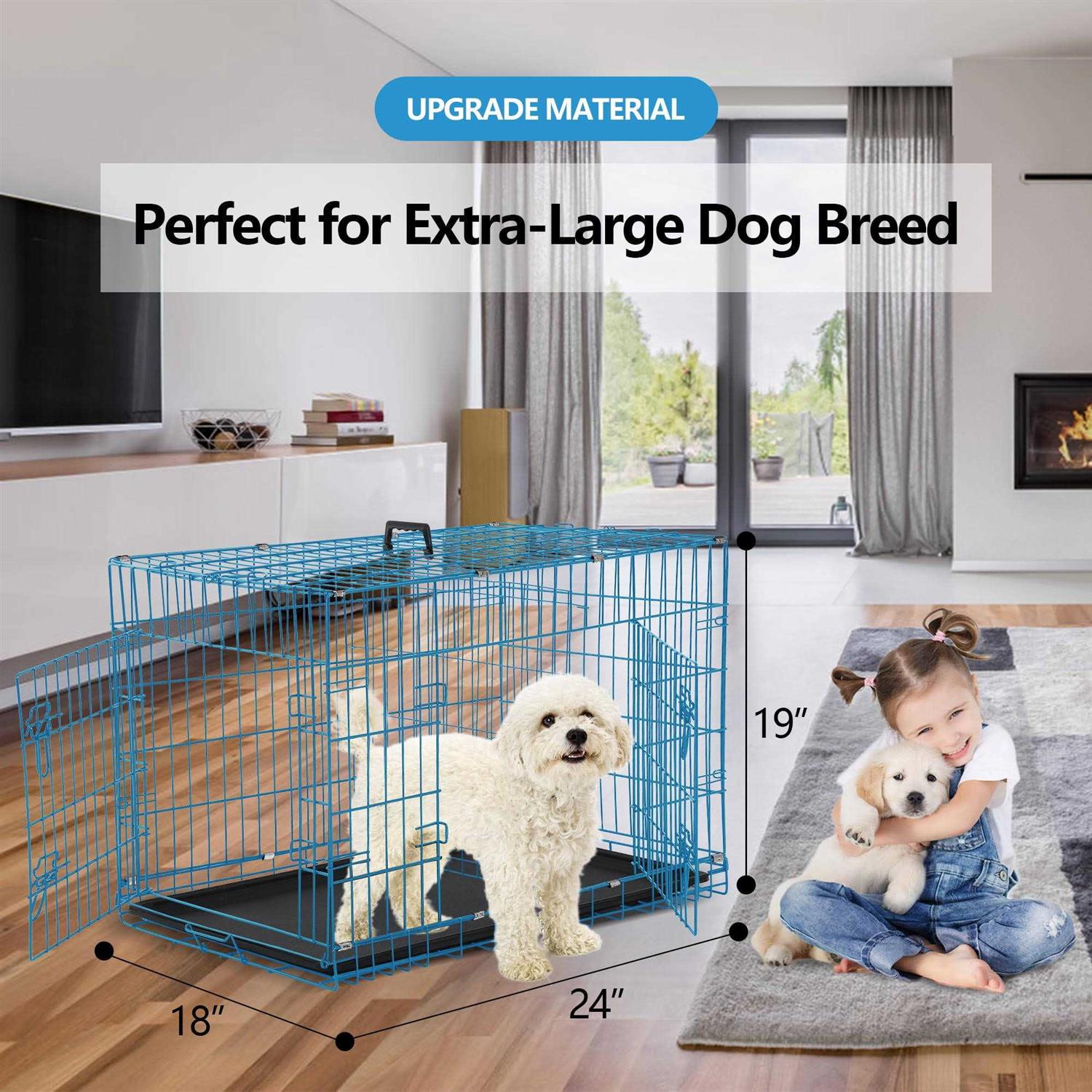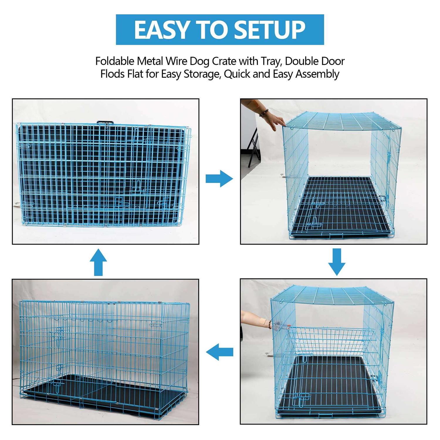 Cl.hpahkl Dog Cage for Large Dogs Indoor, Folding Dog Crates and Kennels Double Door