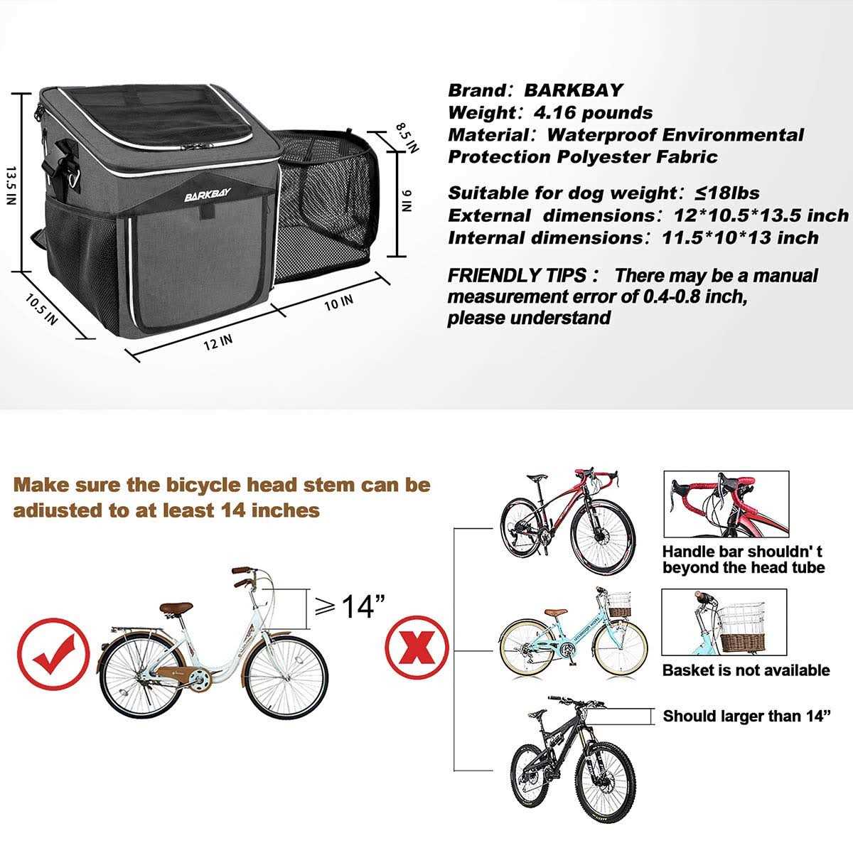 BARKBAY Dog Bike Basket Carrier Expandable Foldable Soft-Sided Dog Carrier