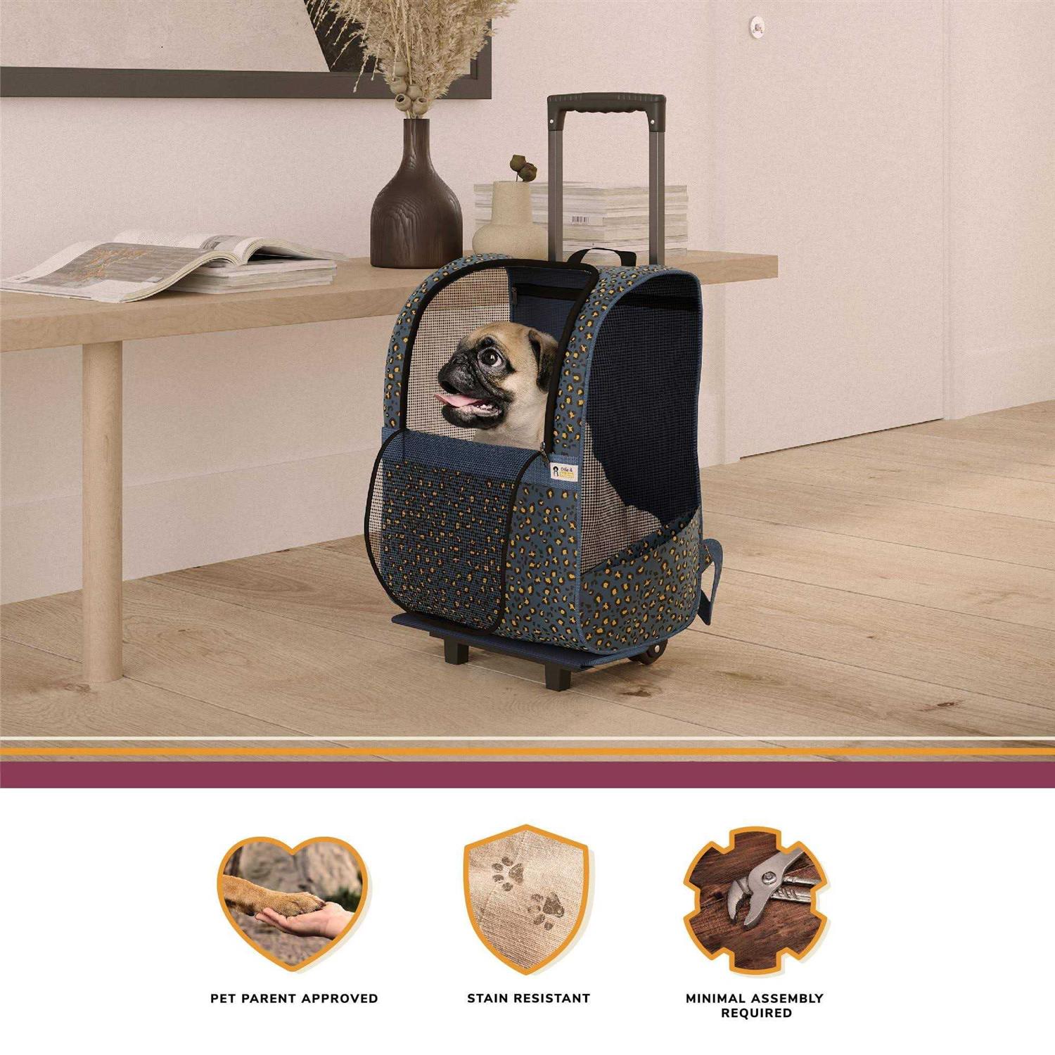 Ollie & Hutch Kaya Pet Carrier Trolley for Travel with Shock Absorbent Wheels, Breathable Mesh Opening for Dogs and Cats