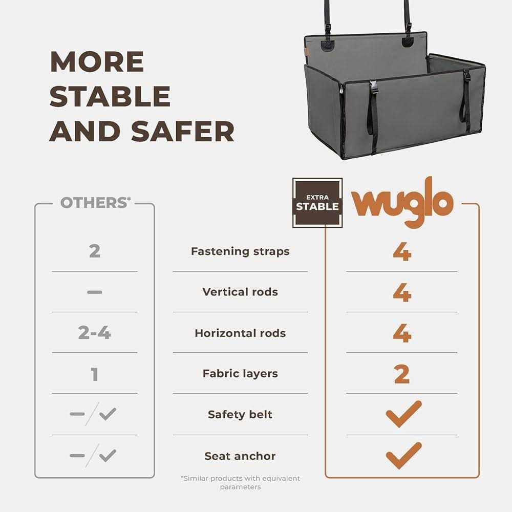 Wuglo Extra Stable Dog car Seat Reinforced car Dog Seat for Medium-Sized Dogs with 4 Fastening Straps