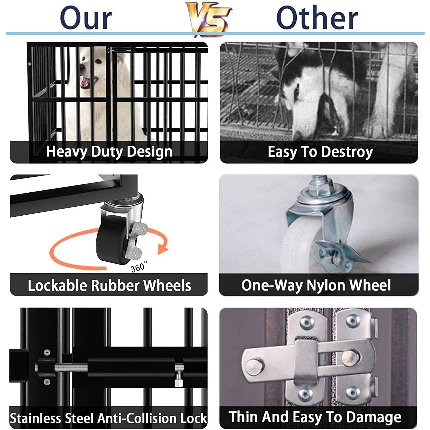Vitesse Heavy Duty Indestructible high Anxiety Dog Crate cage for Outdoor and Indoor with Removable Tray