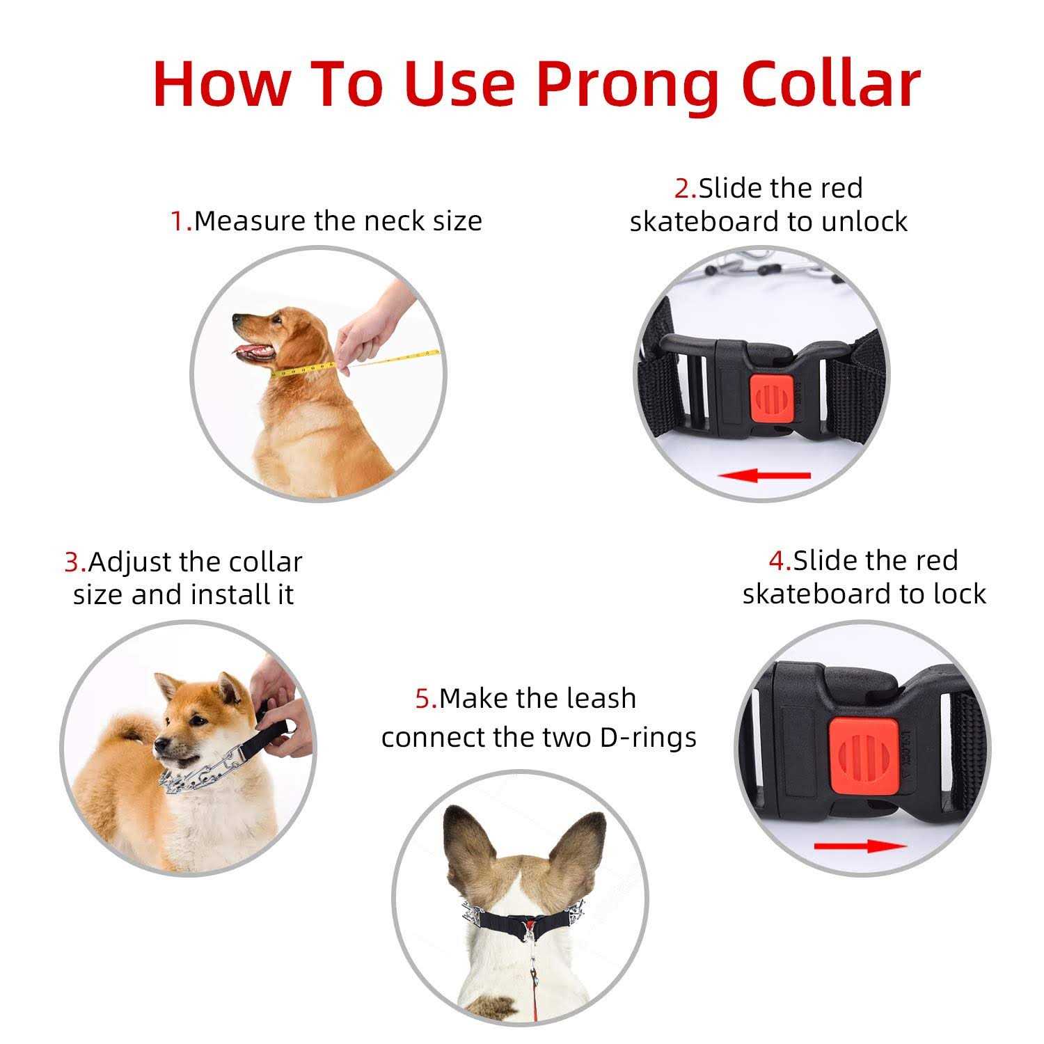 Aheasoun Dog Training Collar,No Pull Dog Collar,Prong Collar for Dogs,High Strength Quick Release Buckle,Comfort Rubber Tips,for Large Dogs