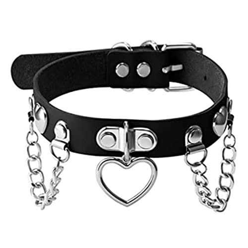 Tosmifairy Black Leather Choker Collar with Chain Leash Set Heart Pendant Necklace for Womens Pet Dogs Cats Unique Gifts