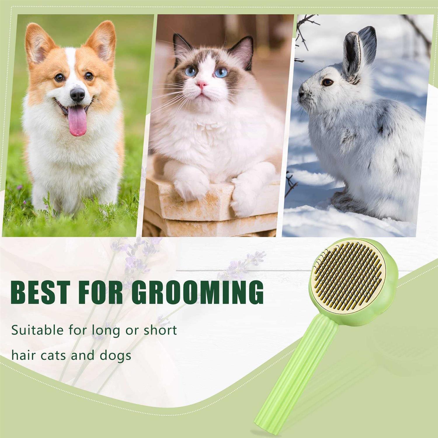 METREE Cat Hair Brush, Self Cleaning Pet Slicker Brush with Release Button, Cat Hair Cleaner Brush for Shedding, Grooming Brush for Long or Short