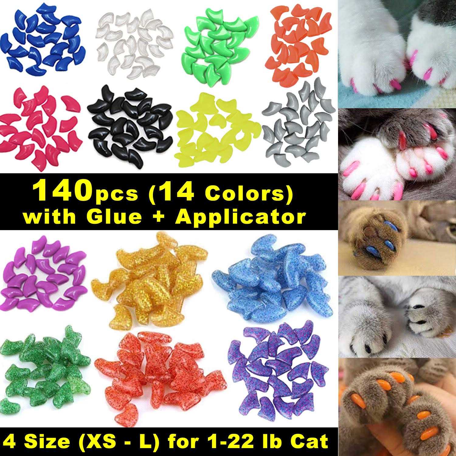 VICTHY Cat Nail Caps Pet Cat Soft Claws Nail Covers Cat Claws with Glue and Applicators Medium