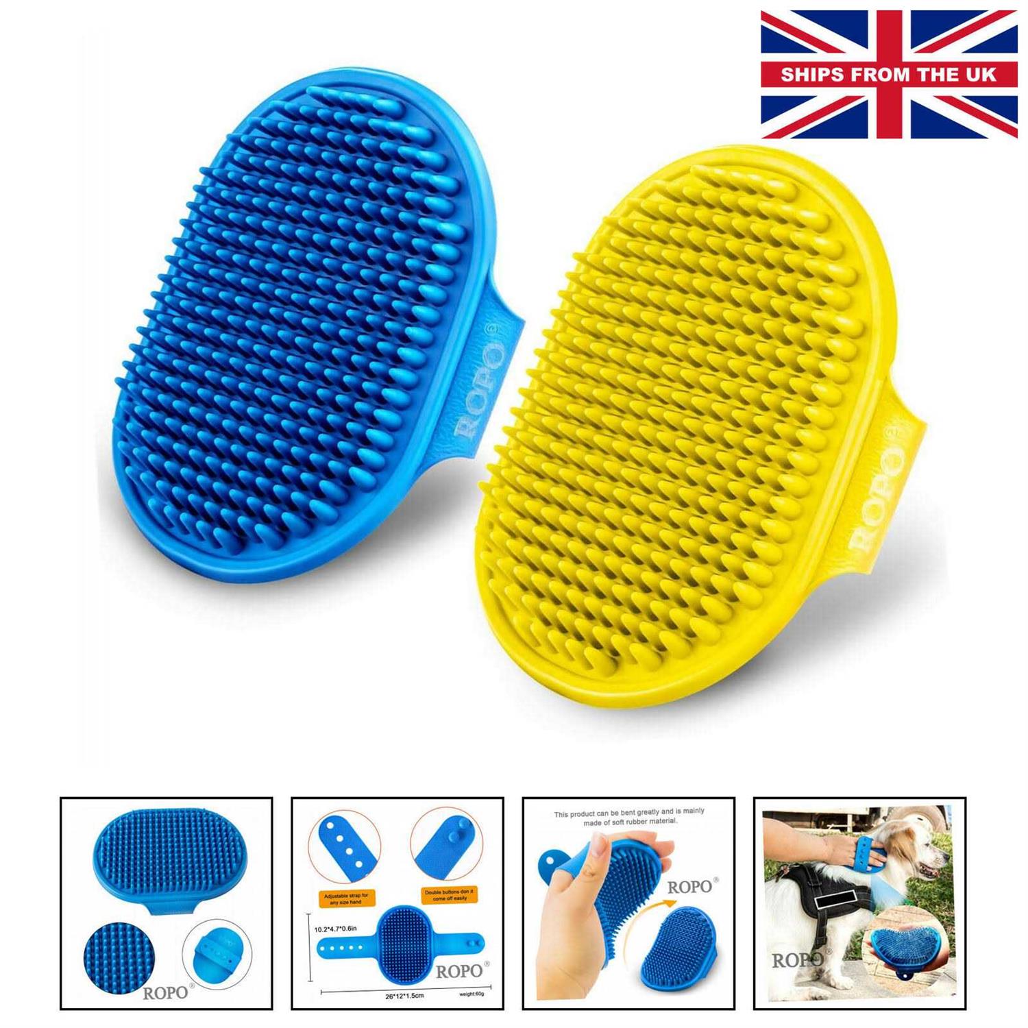 ROPO Dog Grooming Brush, Pet Shampoo Bath Brush Soothing Massage Rubber Comb with Adjustable Ring Handle for Long Short Haired Dogs and Cats 2pcs