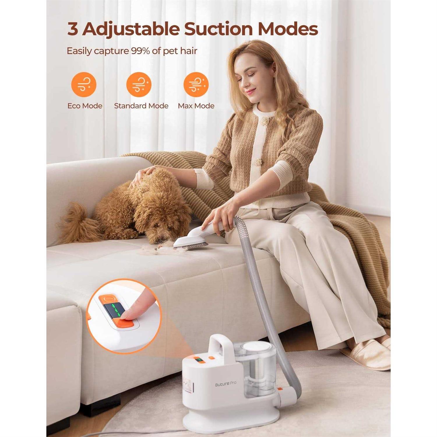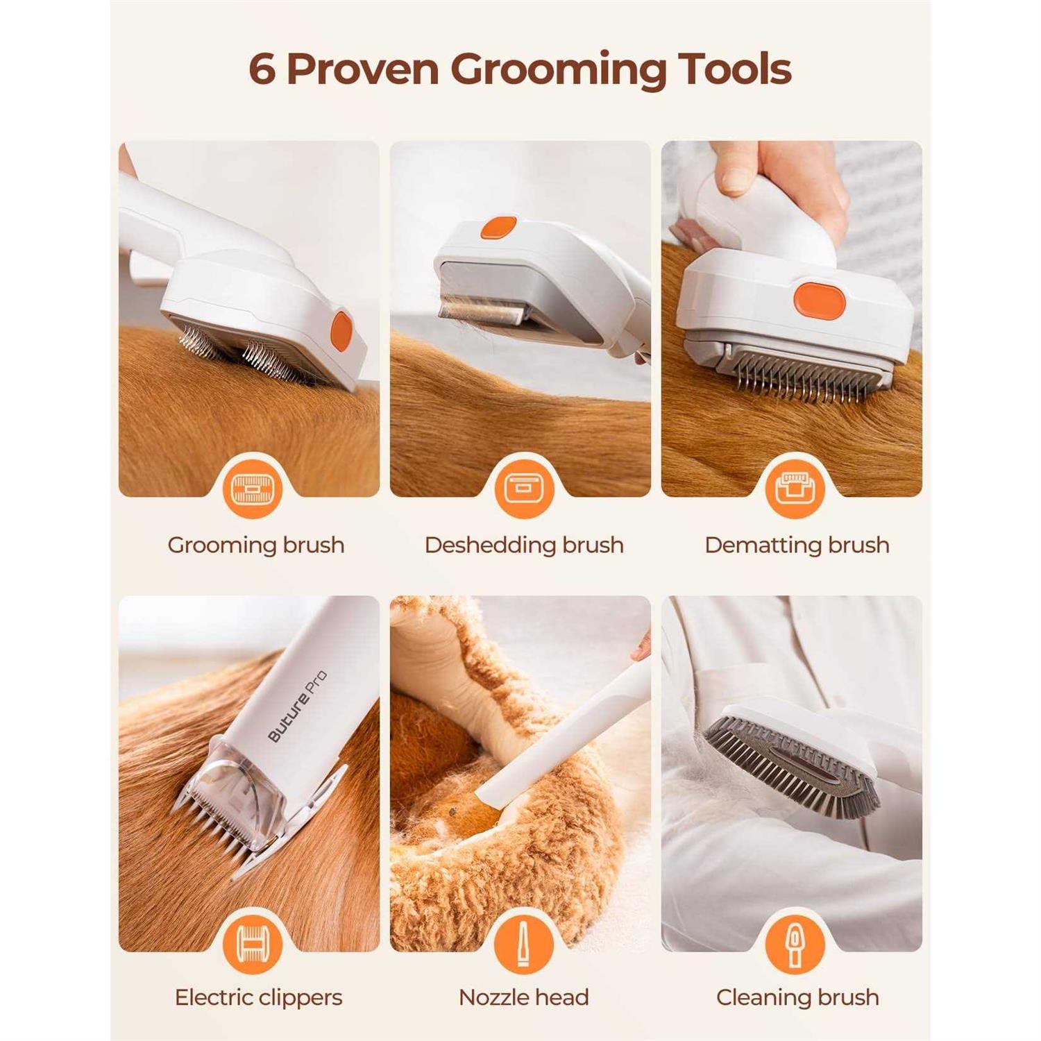 BUTURE Pet Grooming Kit & Vacuum Suction 99% Pet Hair, Professional Dog Grooming Kit with 6 Grooming Tools for Dogs Cats and Other Animals Low Noise