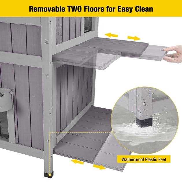 Aivituvin Two Tier Wooden Cat House with Waterproof Roof AIR14-1