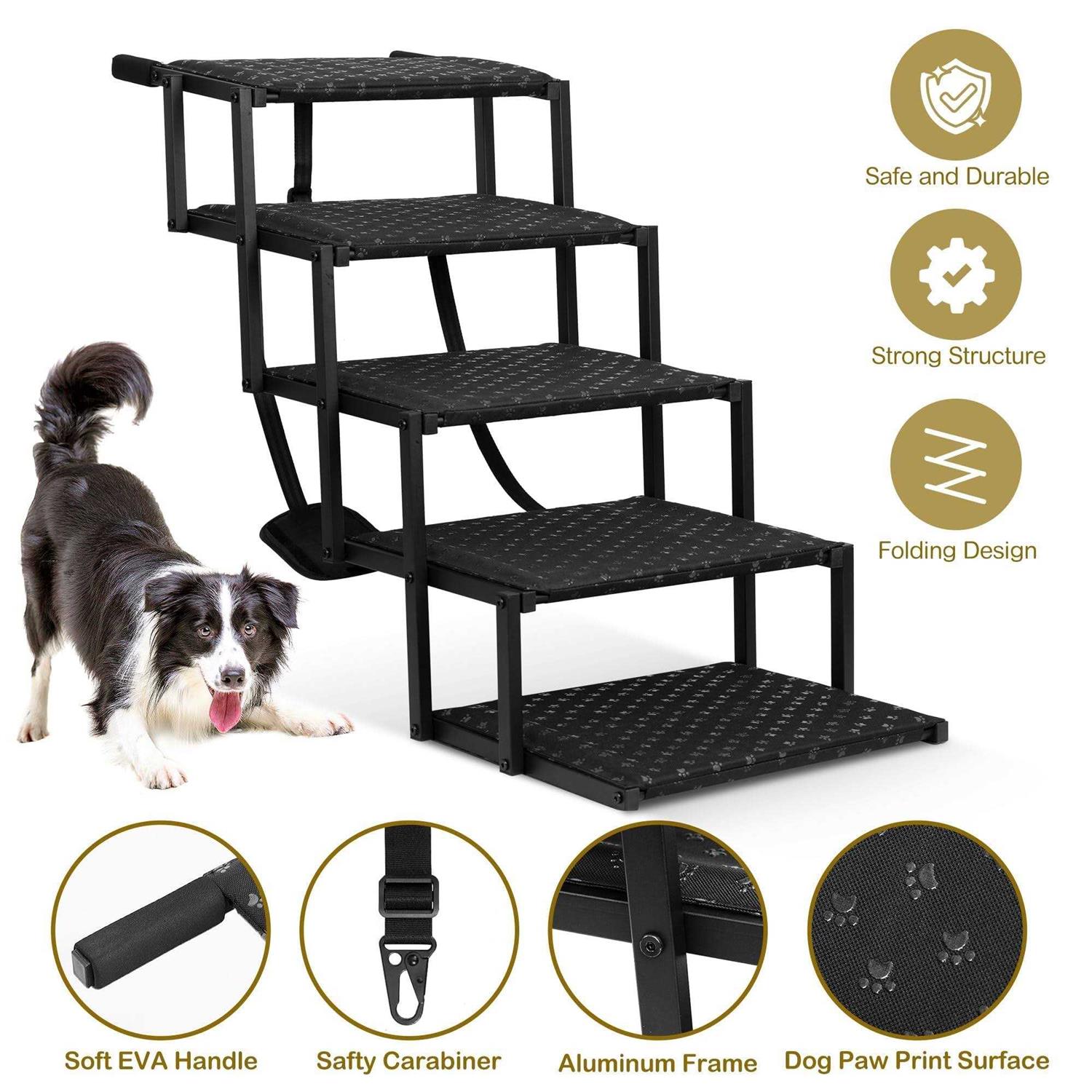 Dog Stairs for Car Foldable Dog Ramps for Large Dogs with Non Slip Surface, Portable Dog Steps for Cars and SUV