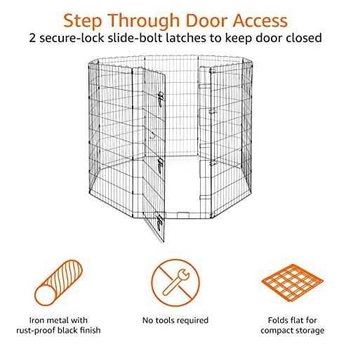Basics Foldable Metal Pet Dog Exercise Fence Pen with Gate