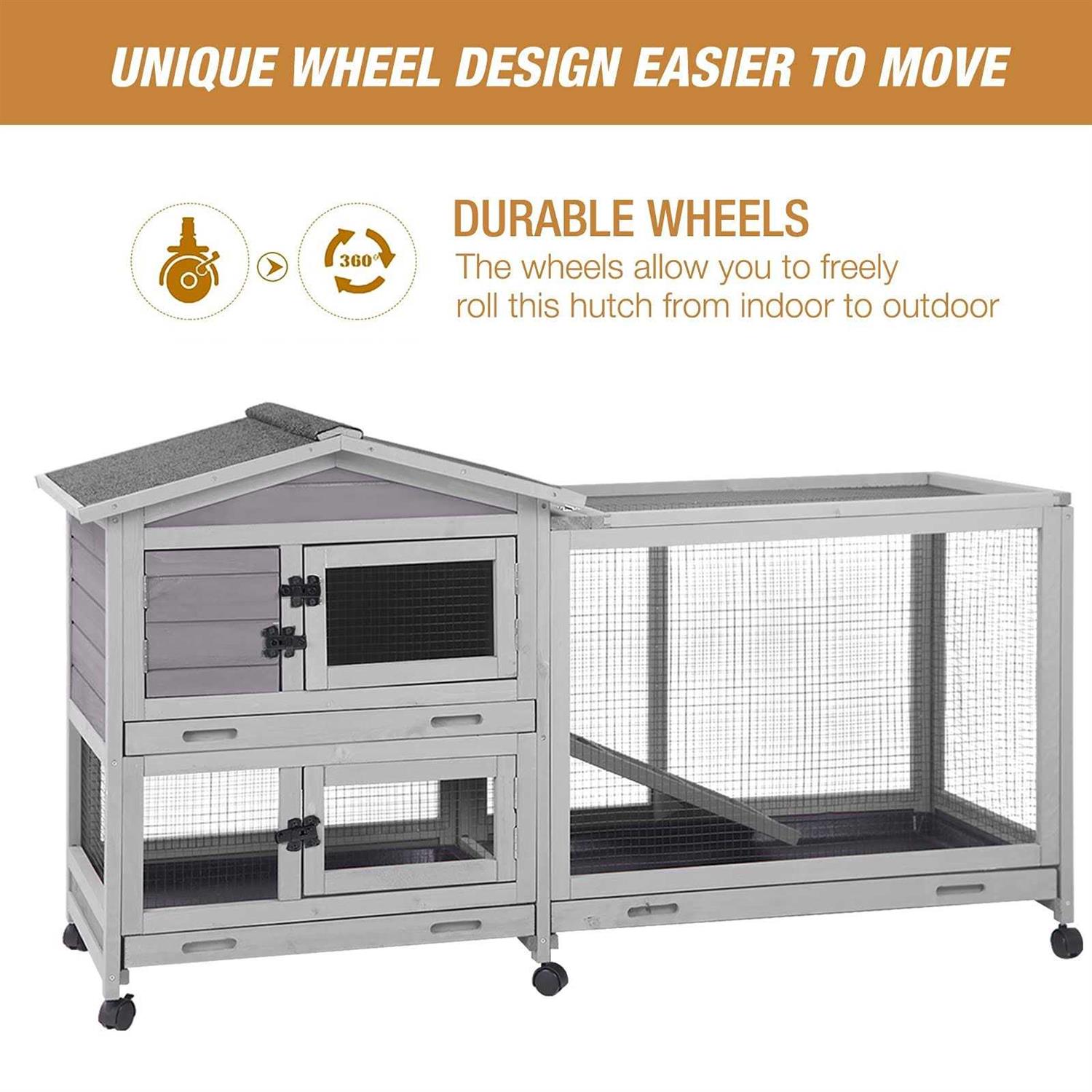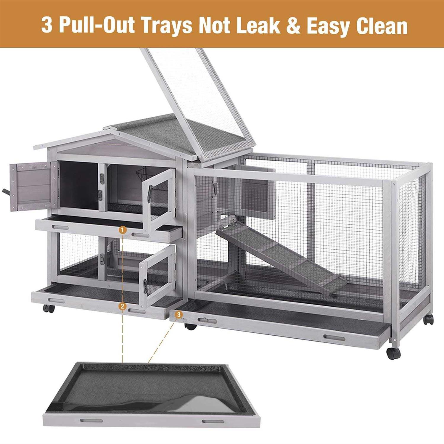 GUTINNEEN Bunny Cage Indoor and Outdoor Rabbit Hutch with Casters Waterproof Roof, Pull Out Tray from Back and Front