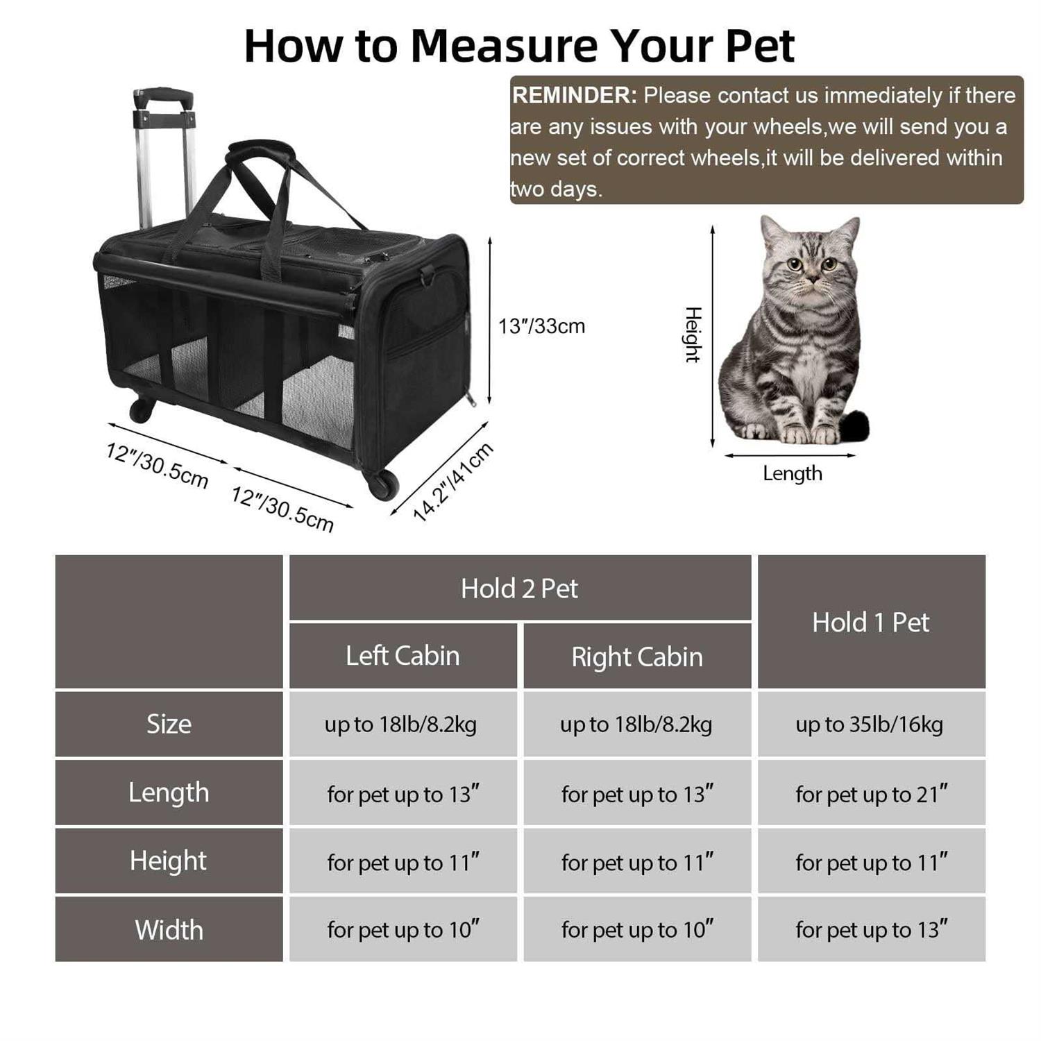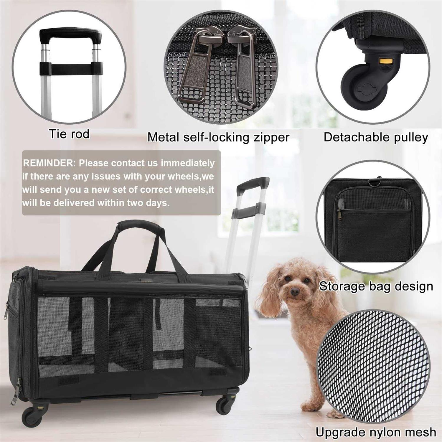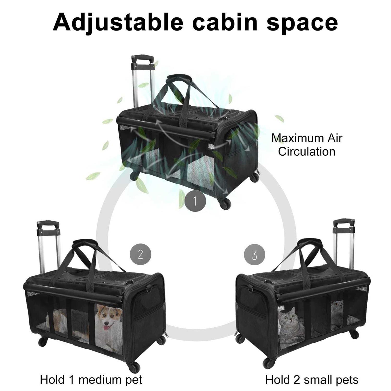 LIONROGE Double-Compartment Pet Rolling Carrier with Wheels for 2 Pets,Cat Rolling Carrier for 2 Cats,Super Ventilated Design,Ideal for Traveling