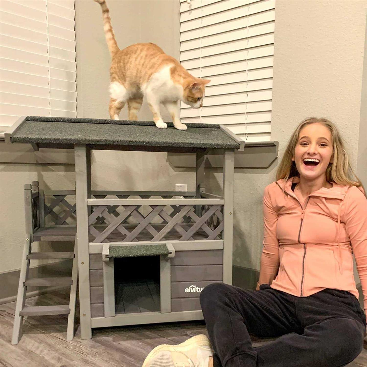 Aivituvin Feral Cat House Outdoor Indoor Kitty Houses with Escape Door for Cats Insulated
