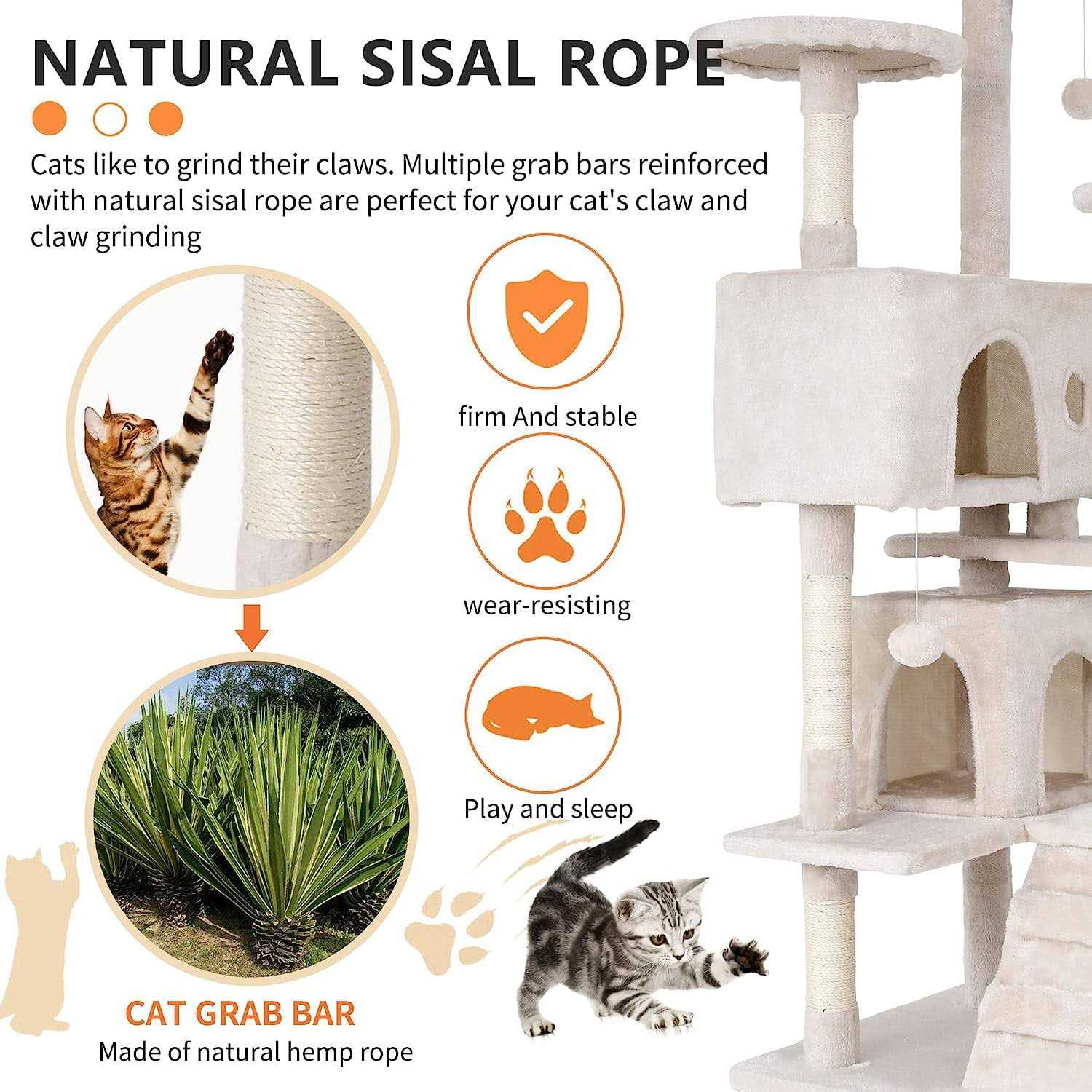 Niamvelo 70-in Cat Tree Tower Furniture Cat Condo with Scratching Post for Indoor Cats