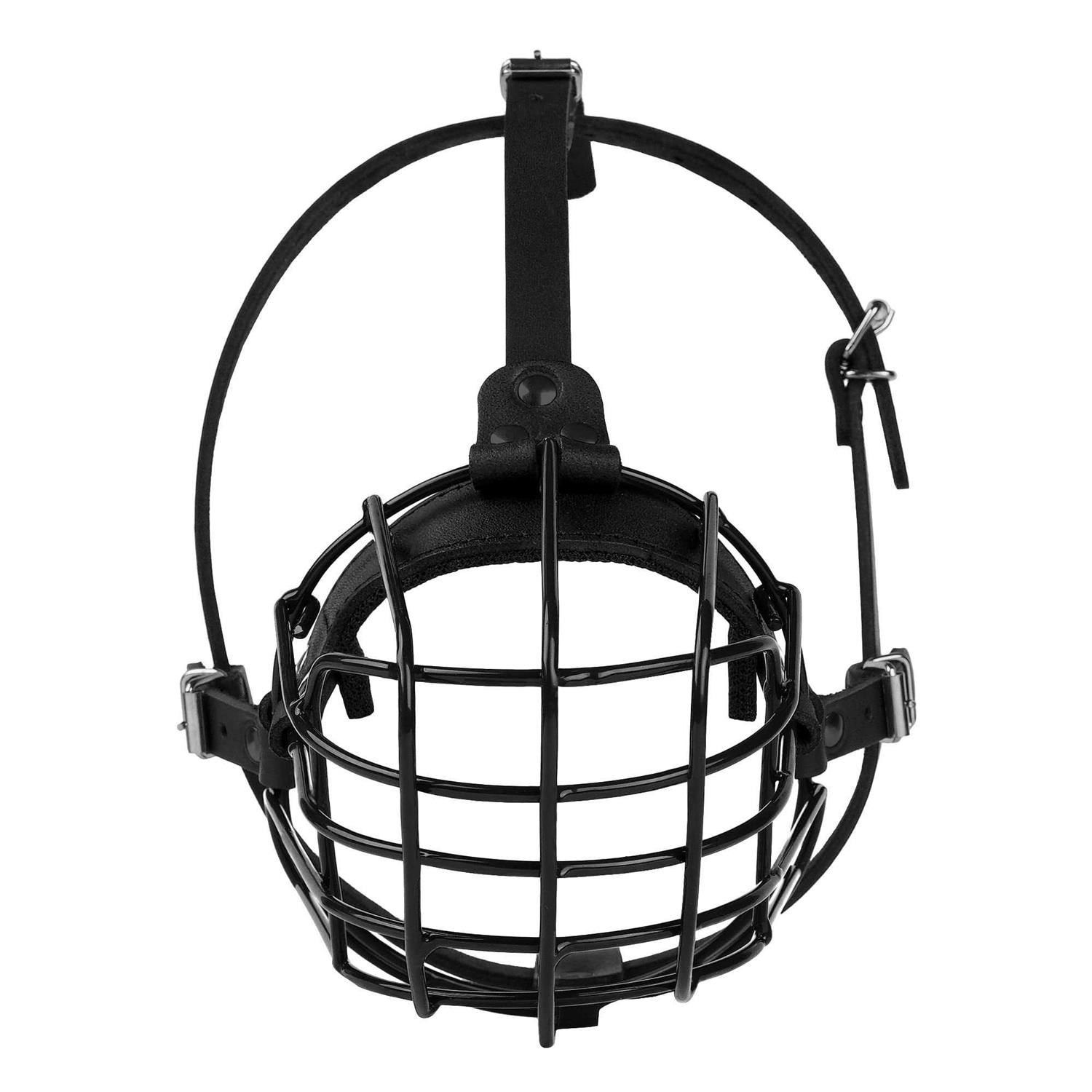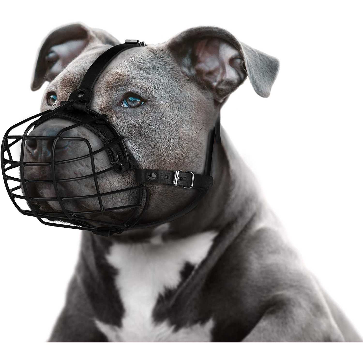 BUDKAS Pitbull Dog Muzzle Metal Mask Amstaff Secure Wire Basket Adjustable Durable Leather Straps for Large Dogs