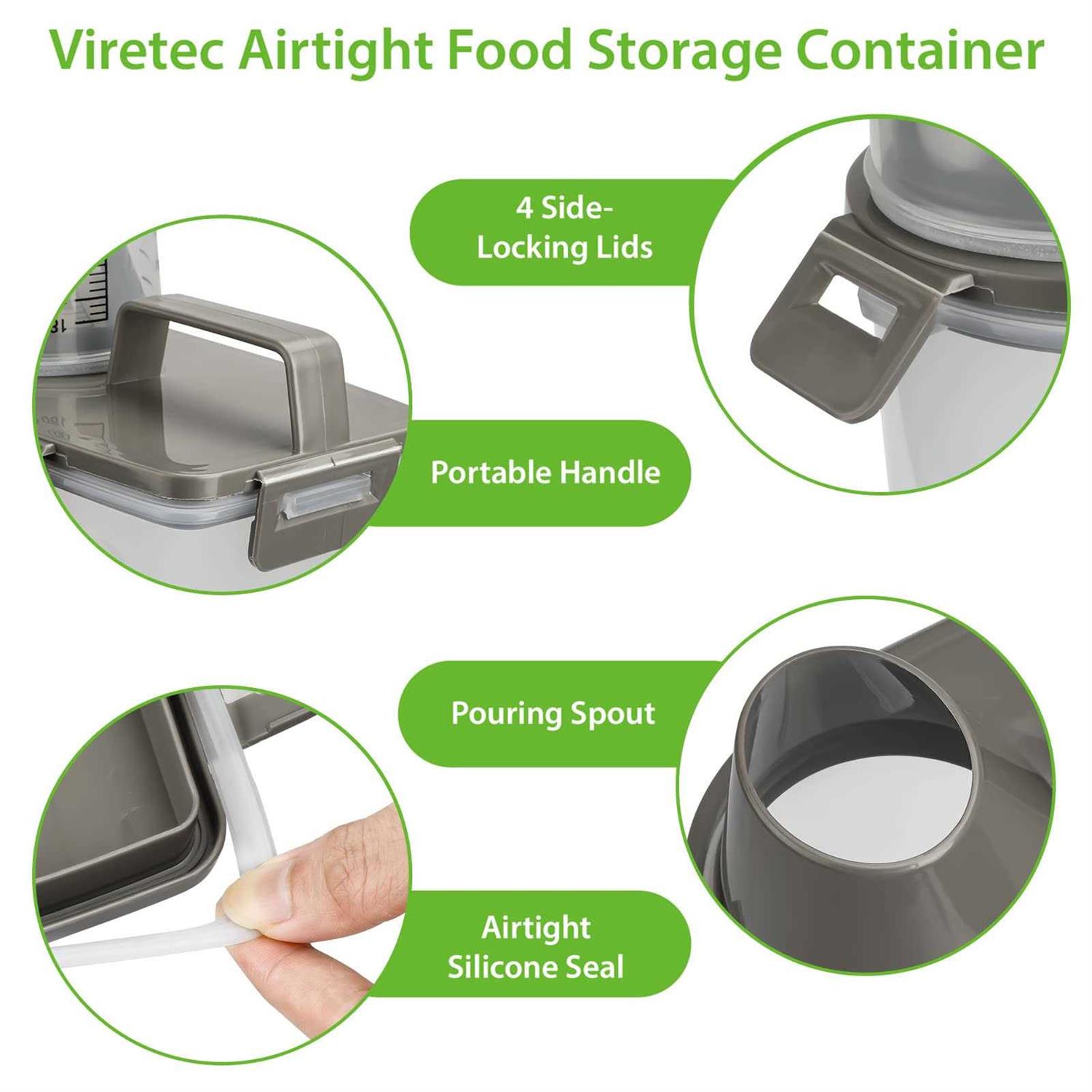 Viretec Rice Airtight Storage Container 3 to 5lbs Cereal Dry Food Flour Bin