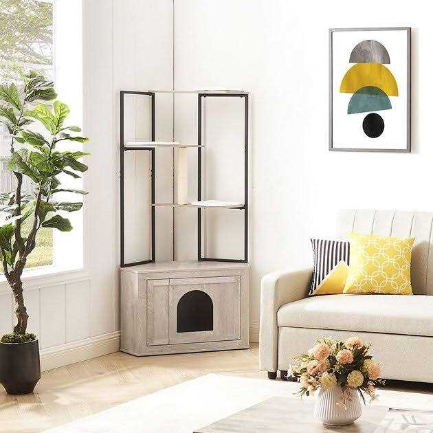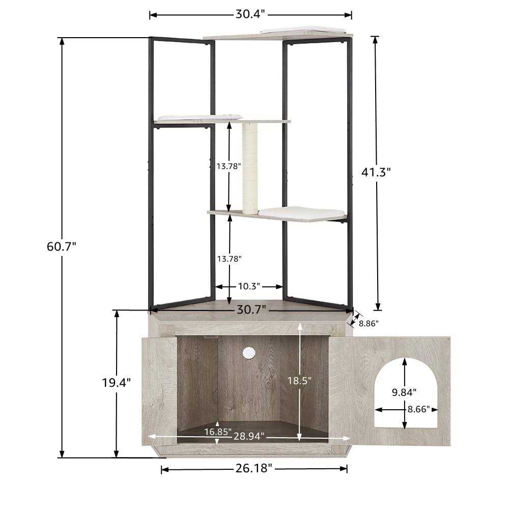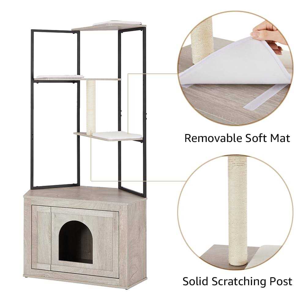 UniPaws Corner Box Enclosure with Cat Tree Tower Cat Litter